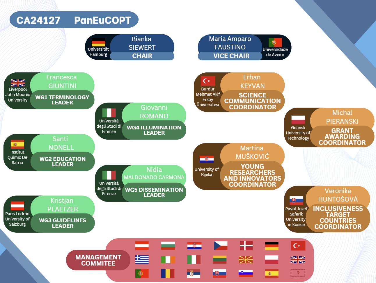 The project officially launched at its inaugural Management Committee Meeting in Brussels on October 9th, chaired by Bianka Siewert from the University of Hamburg (Germany), with key leadership positions being elected (see Figure 2).